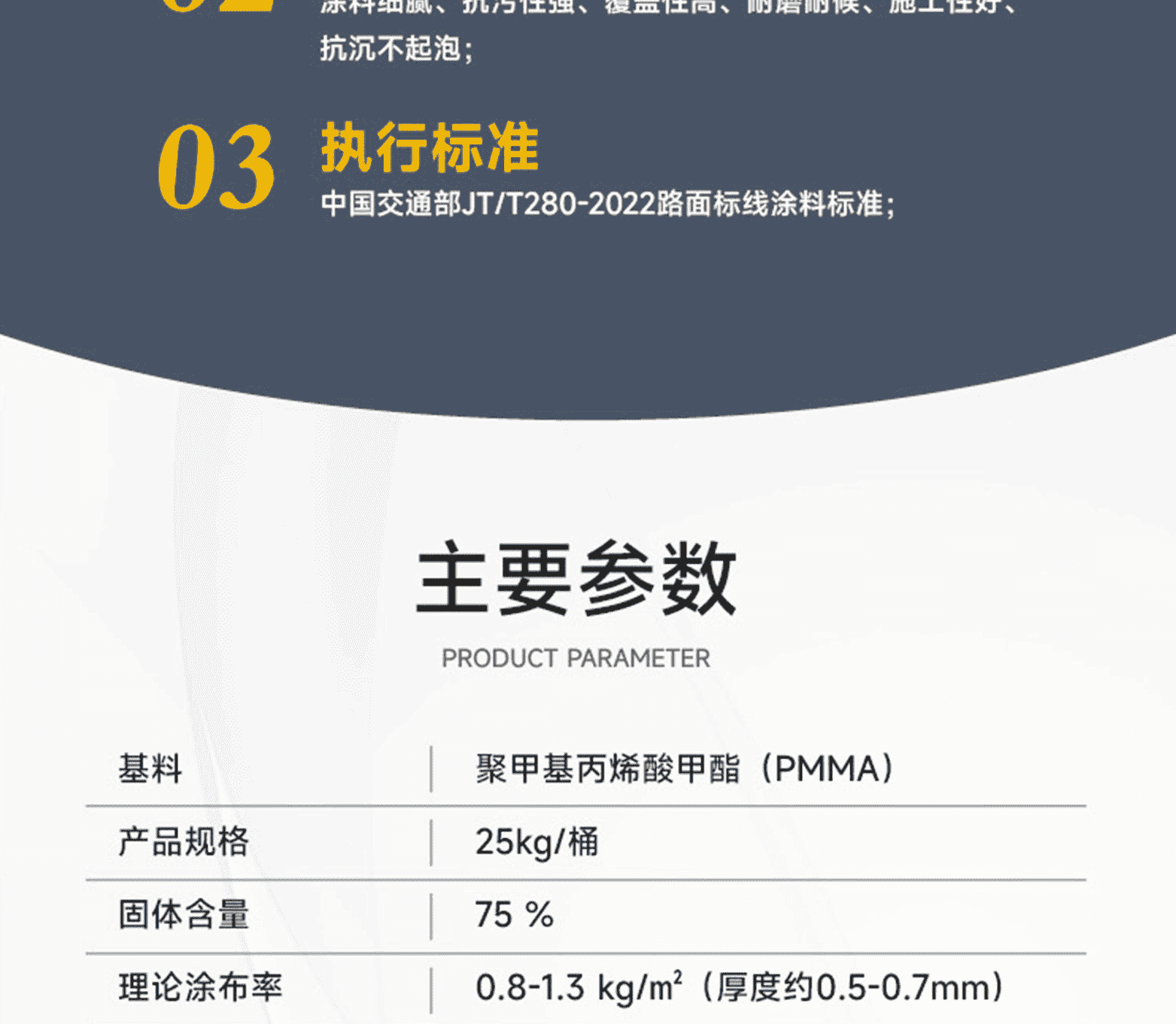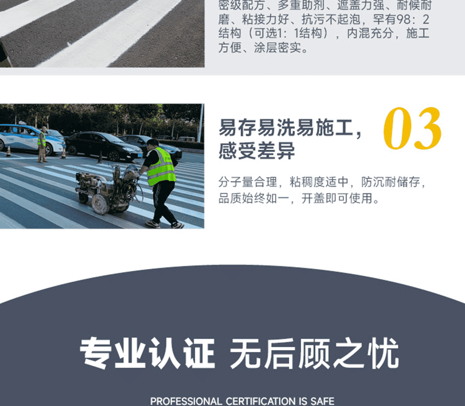 ?專家測評:標線品質:進口基料、氯化鈦白/有機黃顏料、多重進口助劑、復合工藝、標準化檢測;標線特點:涂料細膩、抗污性強、覆蓋性高、耐磨耐候、施工性好、抗沉不起泡;